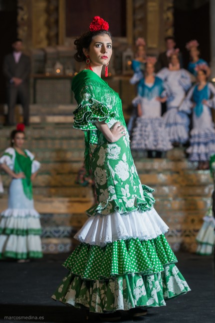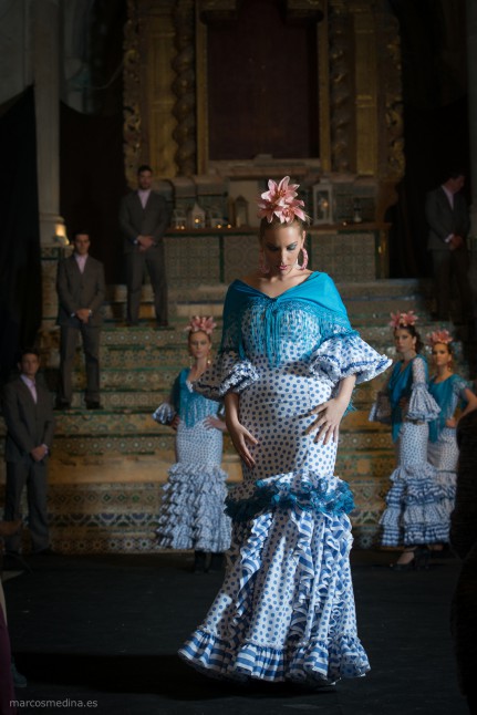 Desfile de trajes de flamenca de Eduardo Oliva y Pilar Santiago en la iglesia de San Pedro en Sanlúcar la Mayor el pasado sábado 11 . En la galería se muestra algunas de las fotografías. Pulsa en la fotografía superior para verla.
