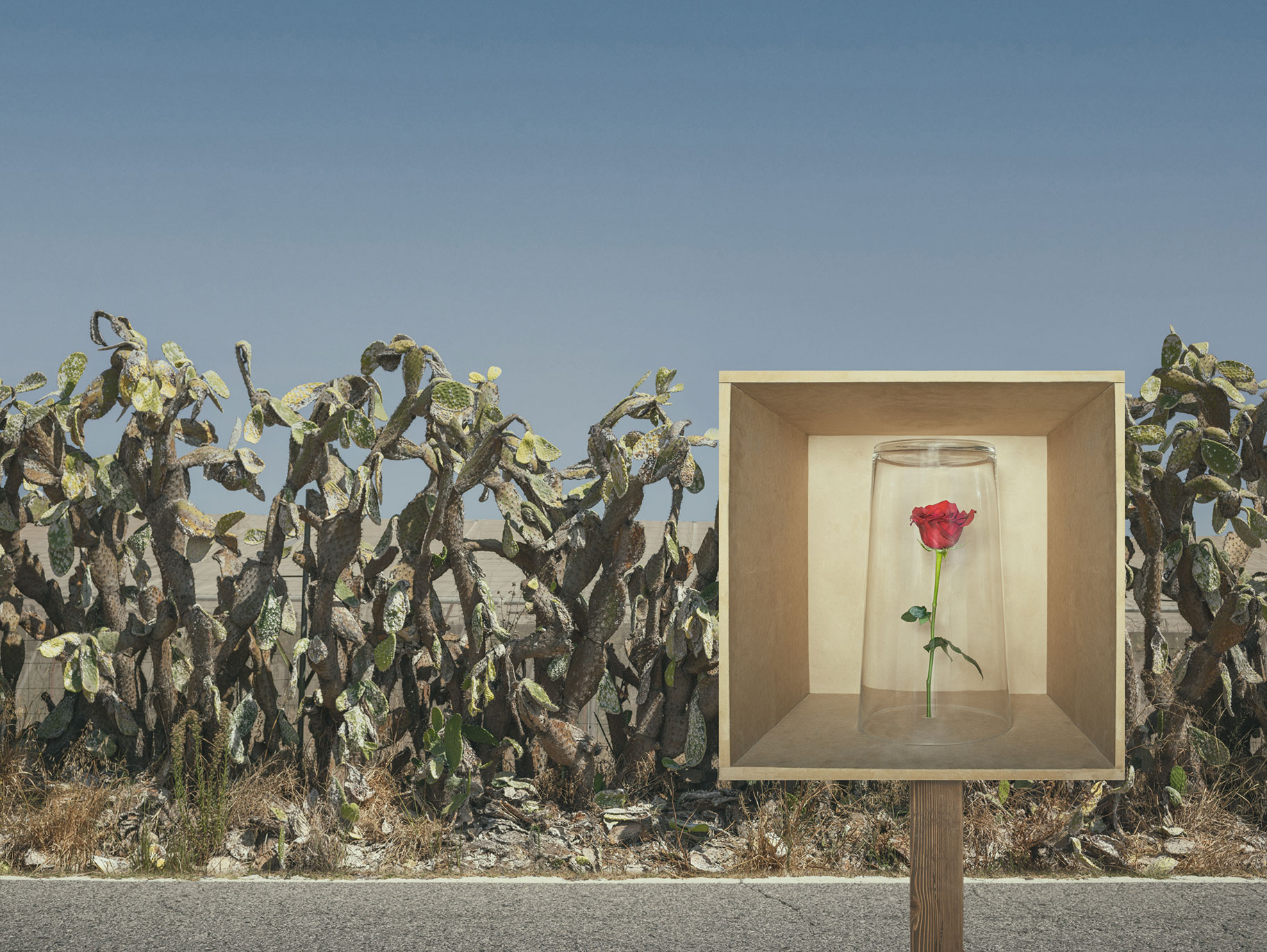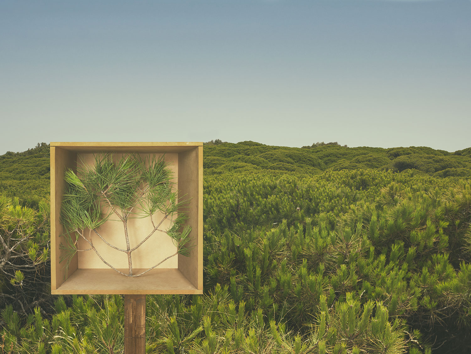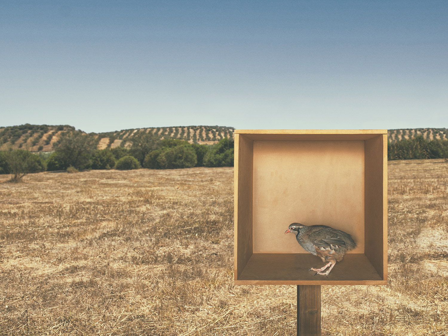 A lo largo de 20 fotografías, la obra cuestiona la manera en que el ser humano se apropia de su entorno, colonizándolo visual, simbólica y físicamente. La caja, presente en todas las imágenes, actúa como metáfora del hogar, pero no como refugio inocente, sino como instrumento de apropiación y de control. En cada escena, los objetos dispuestos en su interior invaden visualmente el paisaje al que se superponen, replicando la lógica de ocupación del ser humano sobre la tierra: organizamos, fragmentamos y domesticamos nuestro entorno para hacerlo habitable según nuestras reglas, sin concesión ni reciprocidad.En este gesto se revela también la condición del ser humano como ente egoísta y consumidor de recursos, incapaz de convivir sin intervenir, sin modificar, sin poseer. La caja contiene no solo objetos, sino la voluntad de dominio, la necesidad de transformar todo en extensión de lo propio, incluso cuando eso implique descontextualizar, reducir o destruir.Pero la obra no se limita a señalar nuestra relación con lo externo. Al proponer un mismo marco visual para cada imagen, se expone también una compulsión interna por la simetría, el orden y la repetición. Esa estructura revela el deseo de controlar no solo el mundo, sino también lo que llevamos dentro. La caja se convierte así en metáfora de la mente, del yo. Así como delimitamos el paisaje, delimitamos también nuestra identidad; encapsulamos emociones, etiquetamos recuerdos, editamos quiénes somos.La serie mantiene una estructura visual precisa, construida a partir de la proporción áurea y una línea constante en el primer tercio de cada imagen. Este encuadre deliberado no solo refuerza la búsqueda de orden frente al caos del entorno, sino que también genera una continuidad formal entre las obras, articulando un conjunto visualmente coherente y unificado.