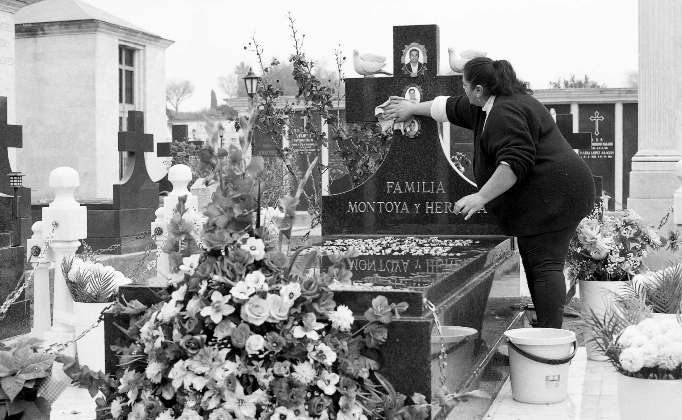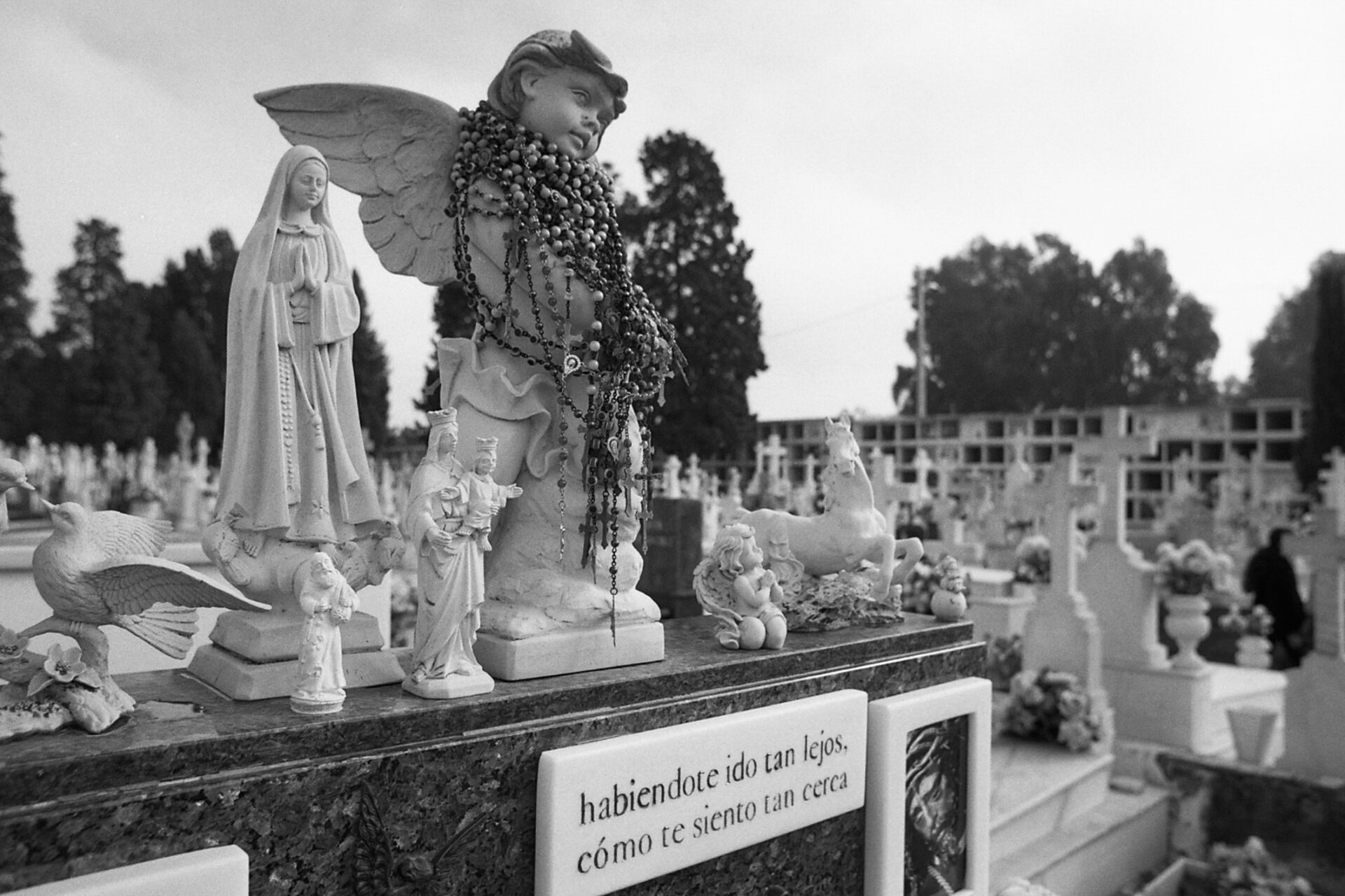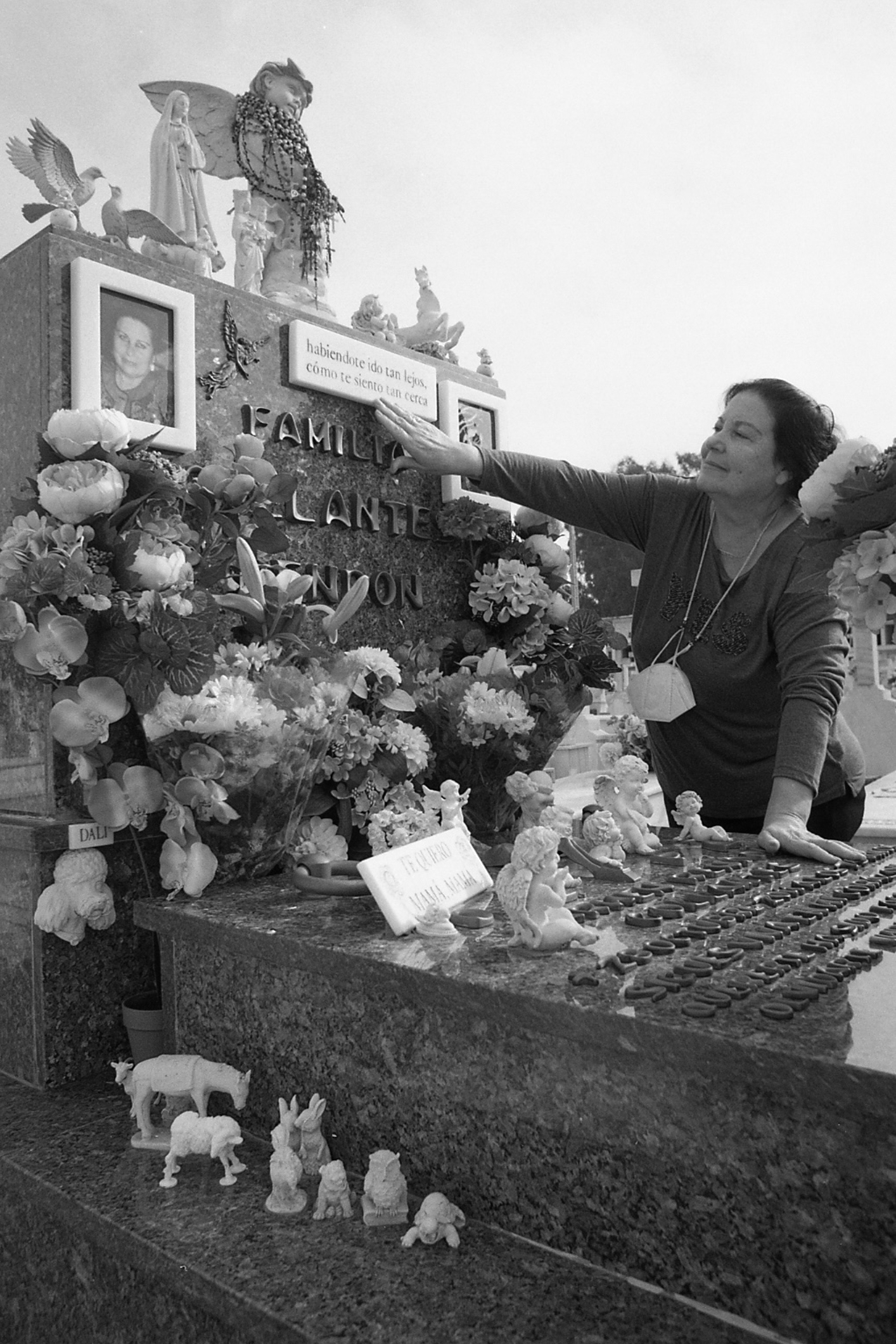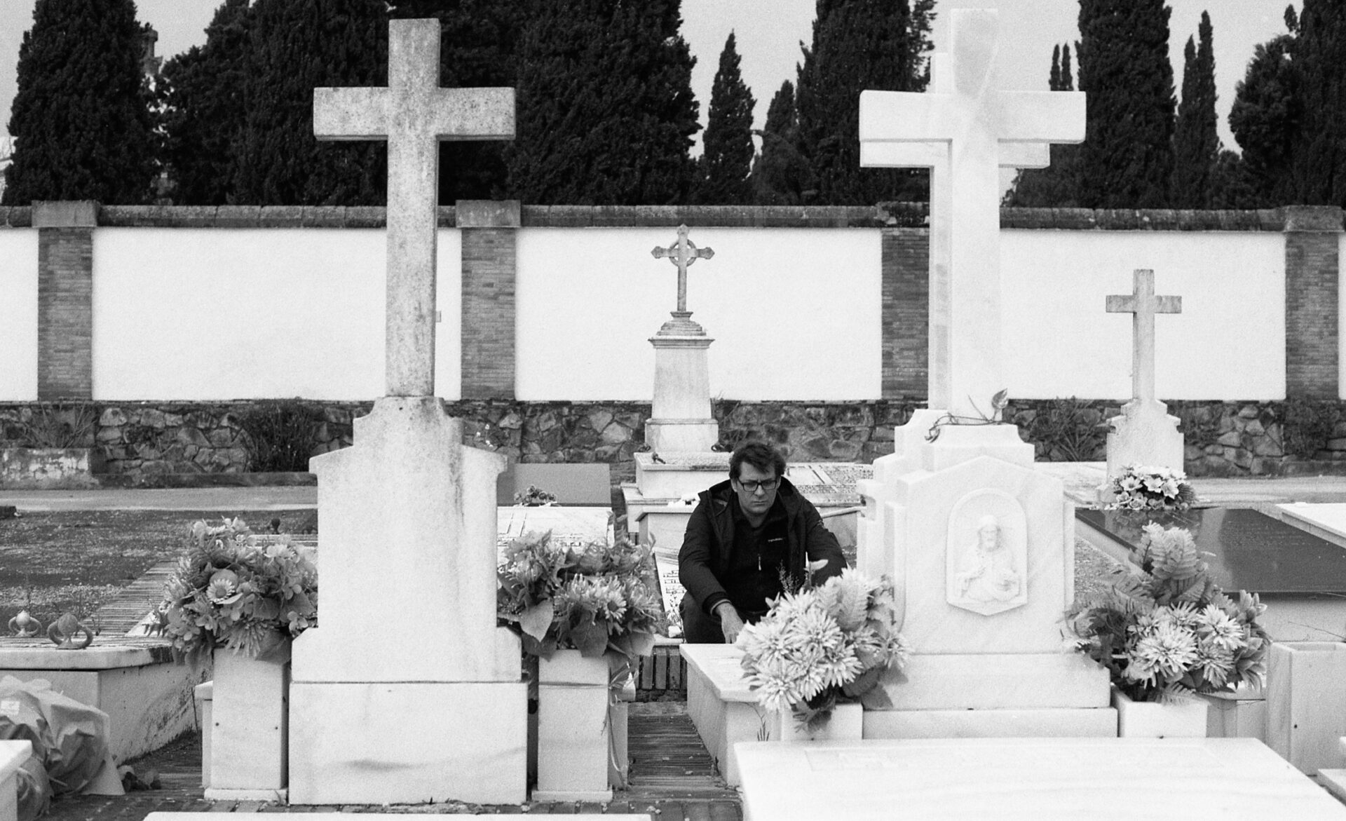“Memento mori” es un proyecto fotográfico analógico, aún en proceso, que explora la relación entre los vivos y los muertos a través del tiempo. La obra se centra en cómo los seres humanos interactúan con la ausencia: mediante el recuerdo, el ritual o el abandono.