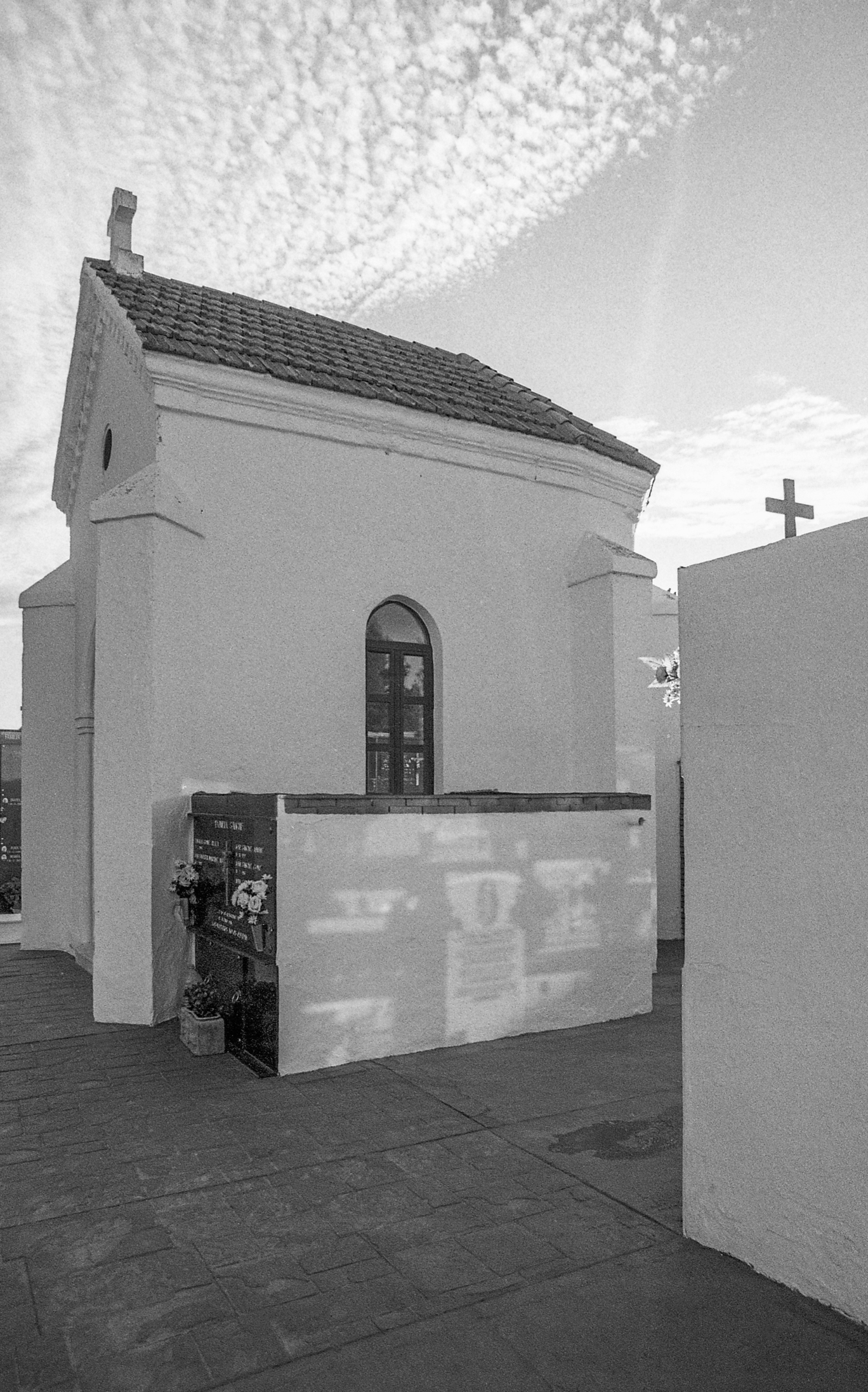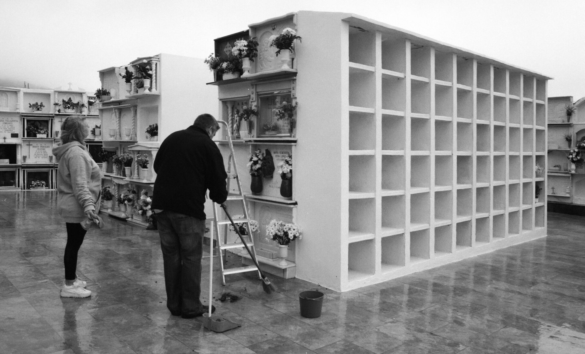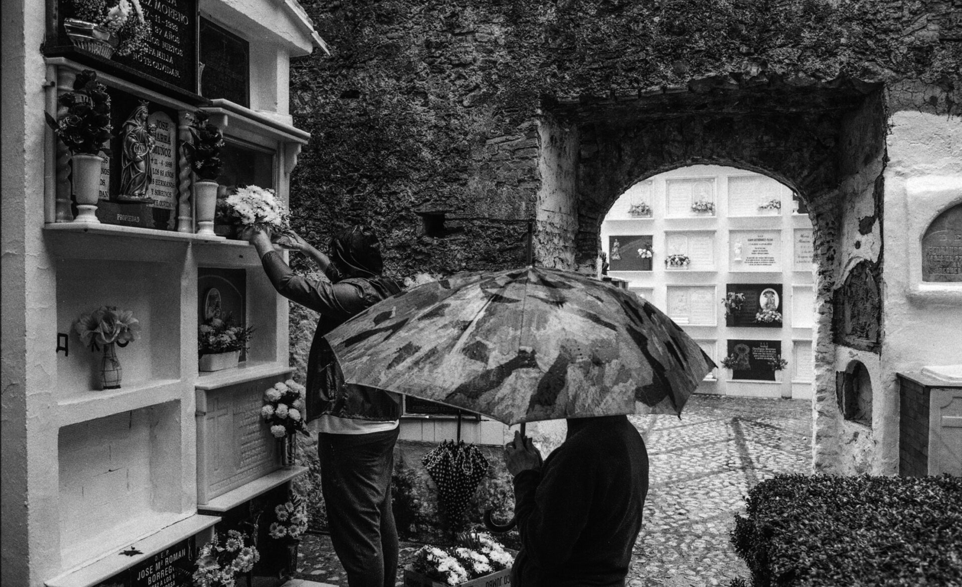 “Memento mori” es un proyecto fotográfico analógico, aún en proceso, que explora la relación entre los vivos y los muertos a través del tiempo. La obra se centra en cómo los seres humanos interactúan con la ausencia: mediante el recuerdo, el ritual o el abandono.