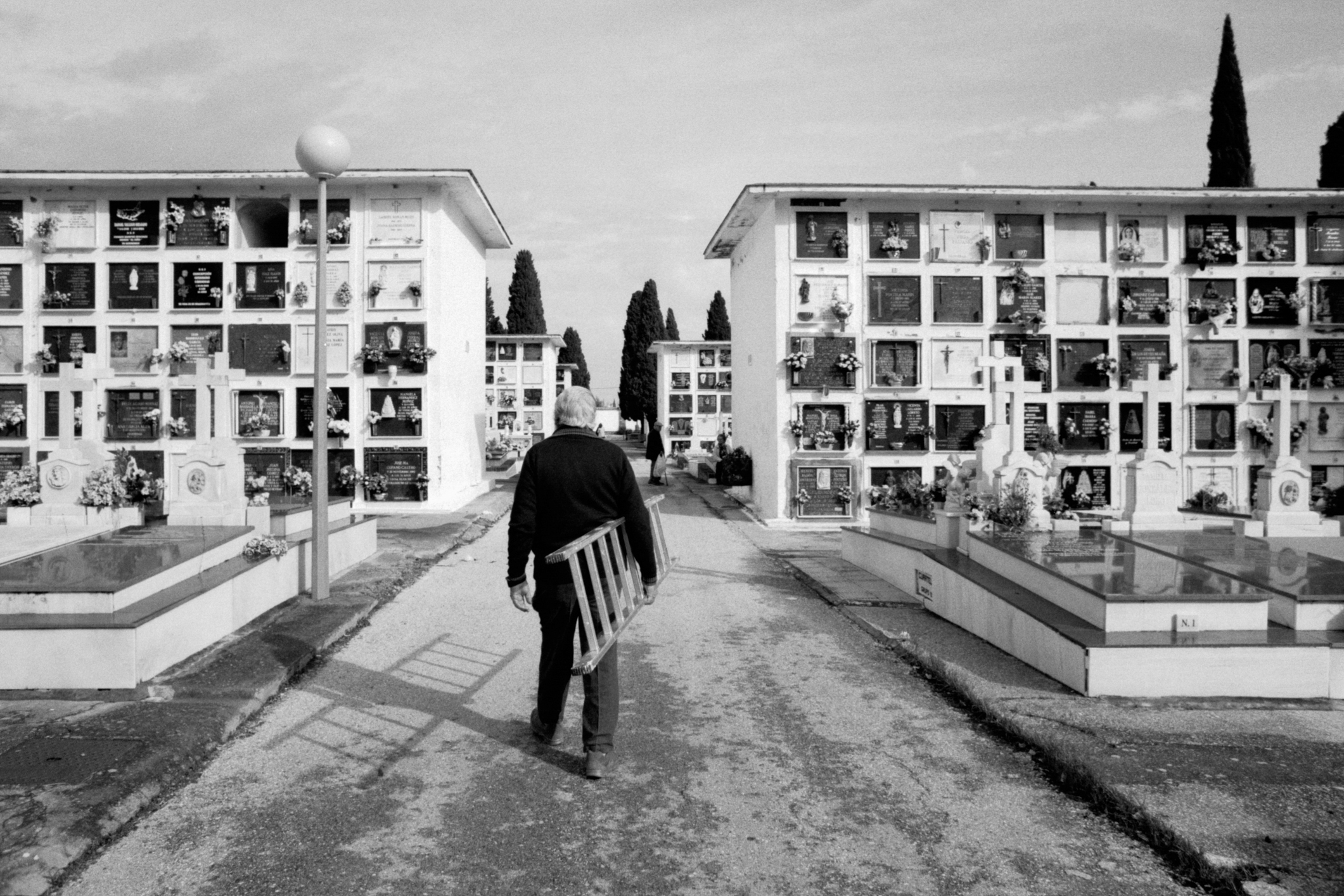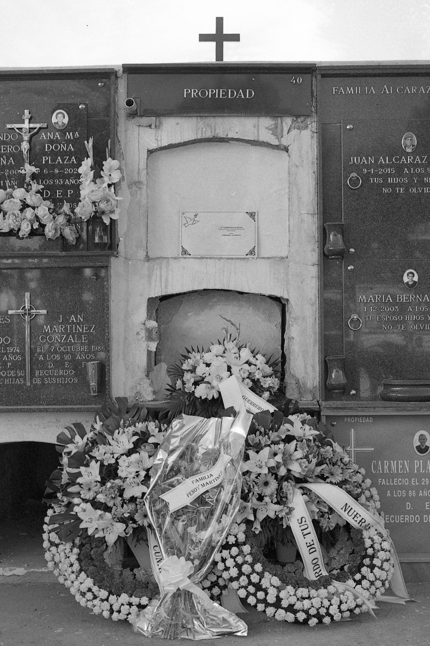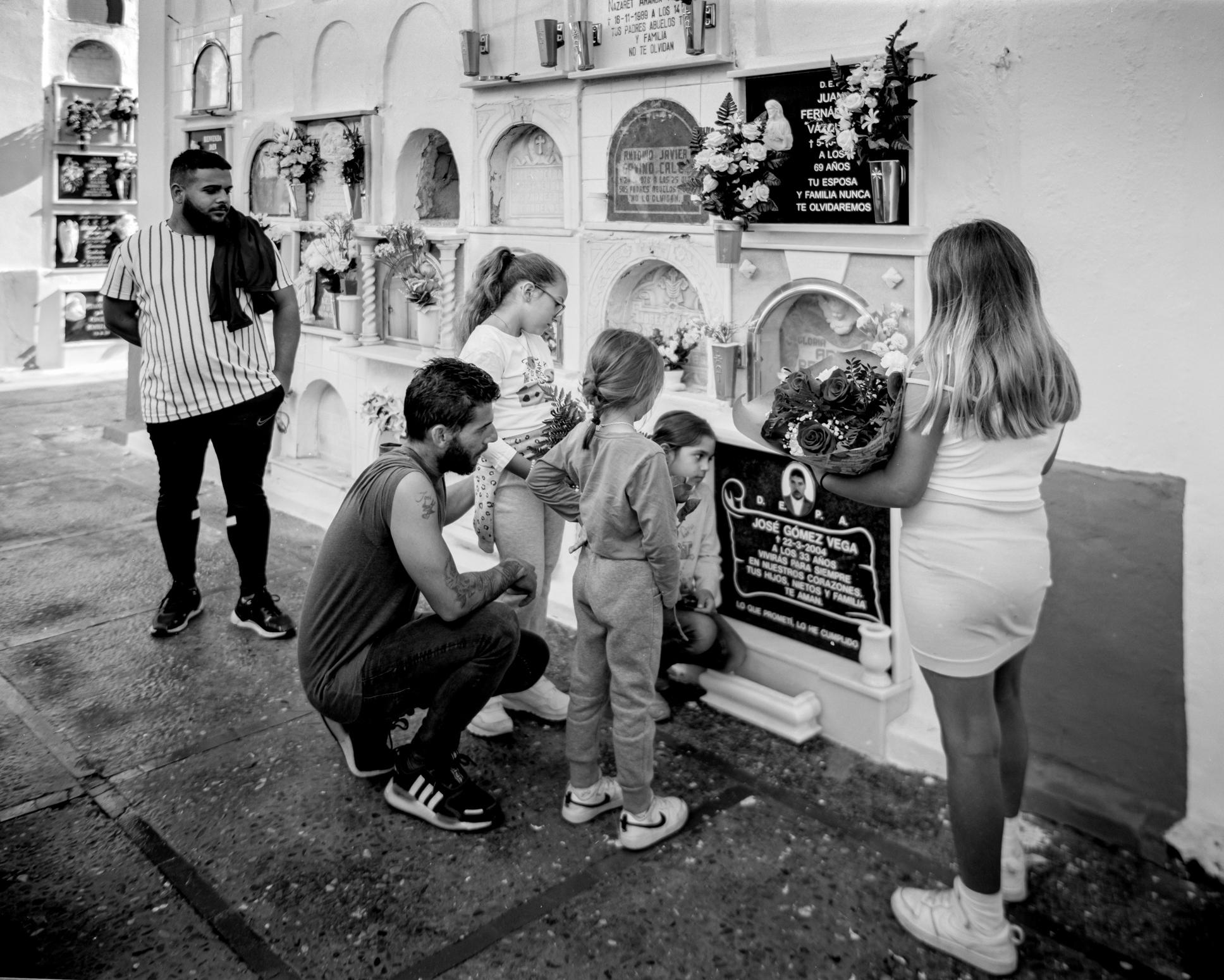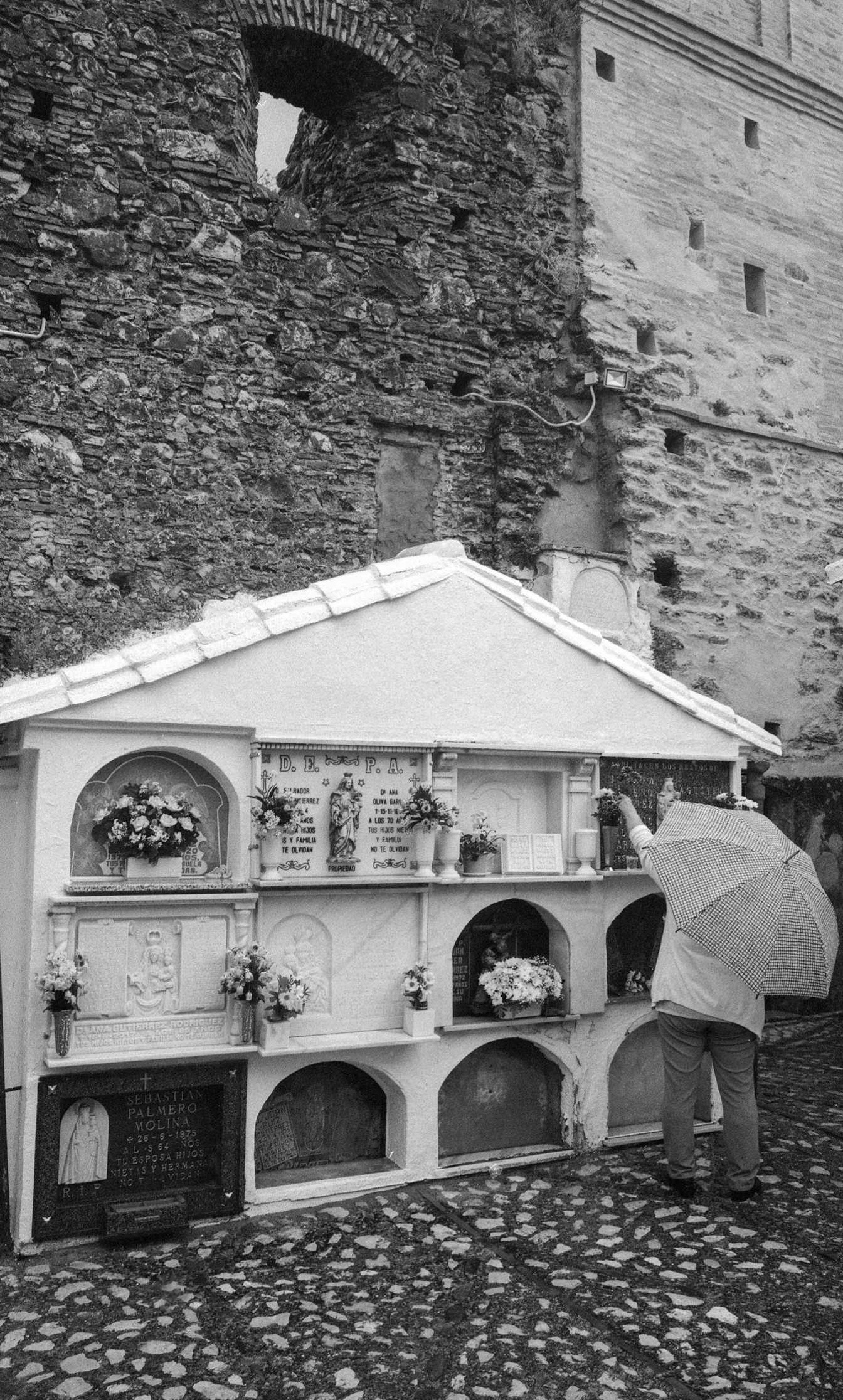 “Memento mori” es un proyecto fotográfico analógico, aún en proceso, que explora la relación entre los vivos y los muertos a través del tiempo. La obra se centra en cómo los seres humanos interactúan con la ausencia: mediante el recuerdo, el ritual o el abandono.
