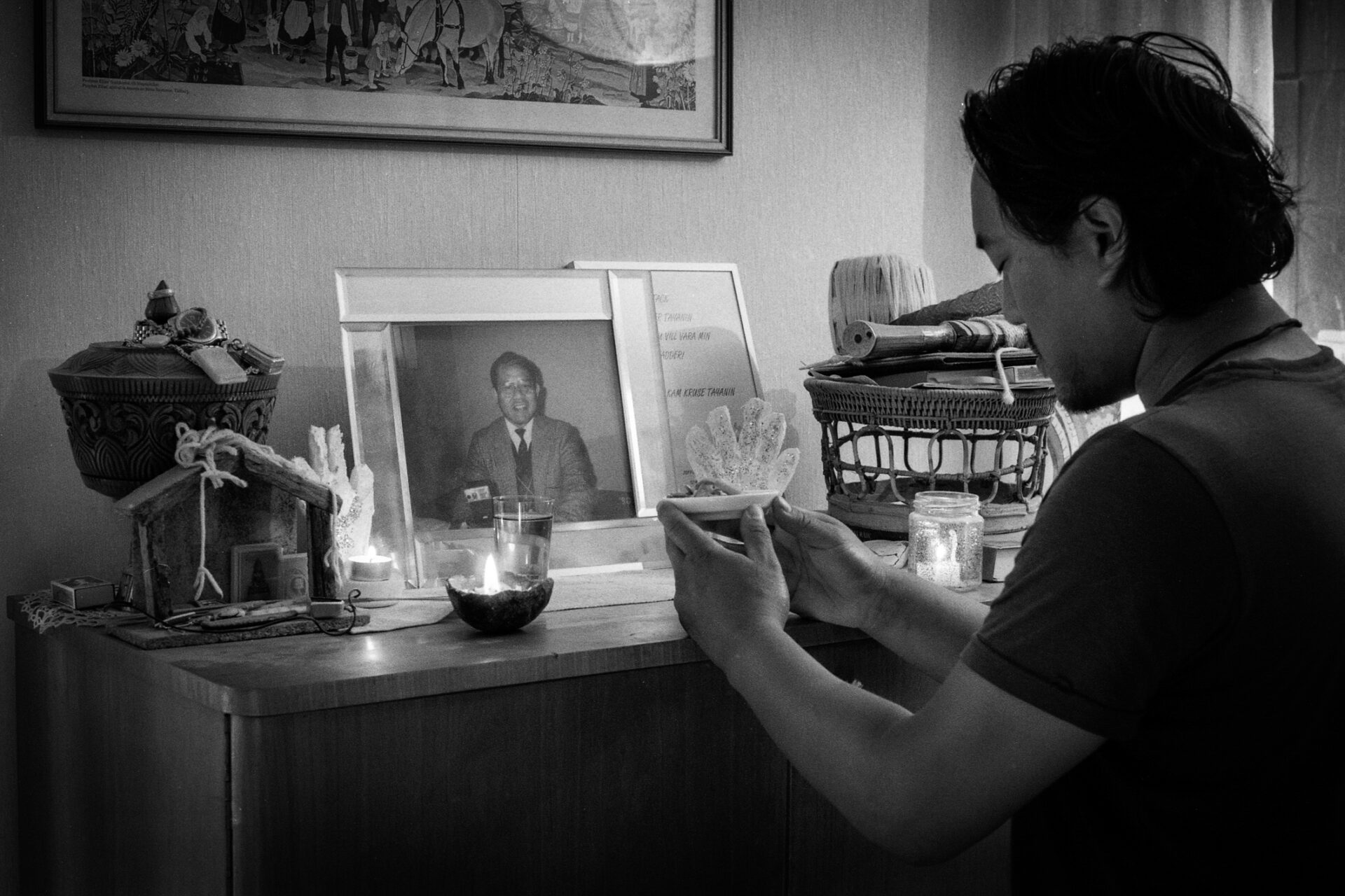 Los rituales, símbolos y prácticas con los que se honra a los muertos. La fotografía se convierte aquí en testimonio del vínculo espiritual, cultural o emocional que persiste más allá de la vida física.